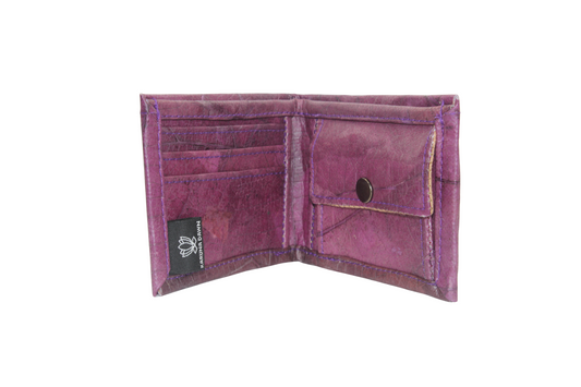 Our Vegan Leather Wallets are the perfect blend of style and sustainability. Handcrafted by skilled artisans using fallen Teak leaves from northern Thailand, each wallet is unique and visually stunning. The Teak leaves used are extremely durable and waterproof, ensuring that your wallet will last for years to come. Our wallets come in popular colours and your choice of with or without coin purse.