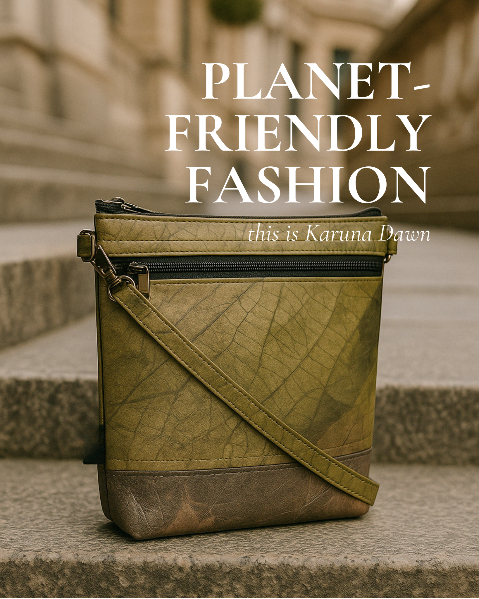 Lightweight, stylish, and sustainable—Karuna Dawn’s vegan leather crossbody bag is the ultimate hands-free essential.